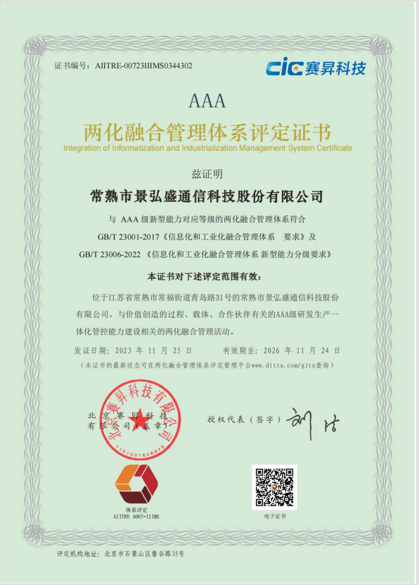 常熟市景弘盛通信科技股份有限公司成立于2006年8月,多年積累沉淀,跨越發(fā)展,目前公司擁有員工近450人,各項(xiàng)專利數(shù)十項(xiàng),注冊(cè)資本1.229億人民幣。公司目前擁有員工近450人,各項(xiàng)專利數(shù)十項(xiàng),注冊(cè)資本1.229億人民幣,成為Apple、Intel、HP、Dell、Google、聯(lián)想、華為、中興、愛立信、Philips、阿特斯、特斯拉、上汽、SAIC Motor,福汽、北汽、菲尼克斯、安費(fèi)諾、泰科等世界知名企業(yè)的重要供應(yīng)商。公司在新工廠籌建企業(yè)內(nèi)部大數(shù)據(jù)中心,建設(shè)基于工業(yè)物聯(lián)網(wǎng)的“智能制造”項(xiàng)目,利用大數(shù)據(jù)管理實(shí)現(xiàn)智能化管理的高科技公司,并加強(qiáng)人才的培養(yǎng)和招聘,引進(jìn)了國(guó)際尖端人才,以及面向未來...更多>>